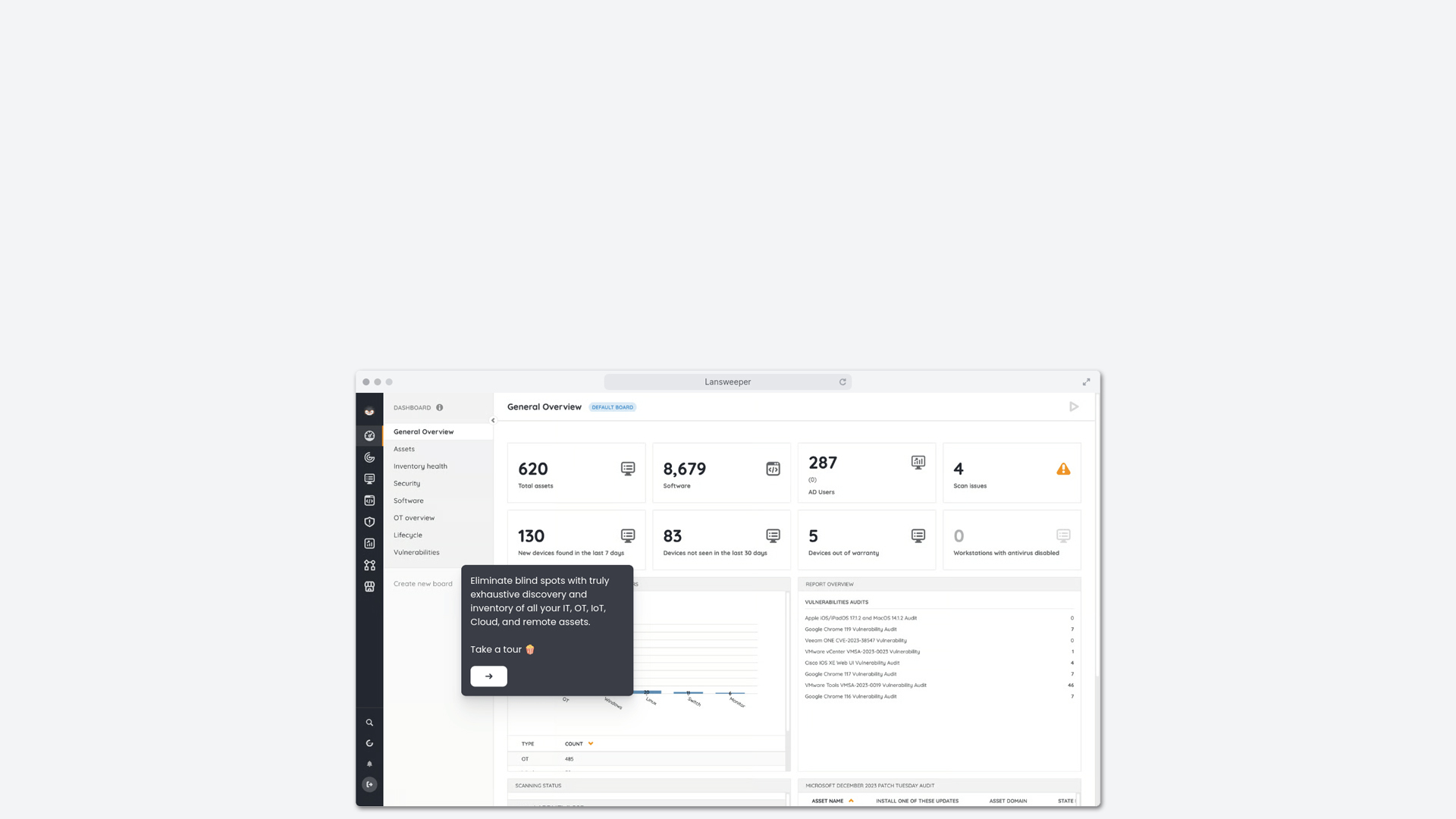 Lansweeper 为您提供完整而准确的资产库存管理解决方案,集中管理网络中正在发生的事情并完全自动化您的网络库存。